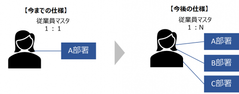 今までは、利用者IDに対し所属部署1つしか割り当てられませんでしたが、複数部門閲覧権限を与えられるようになりました!